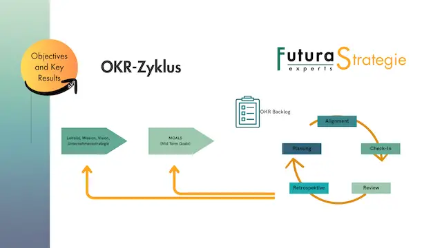 Für das strategische Mapping entwickeln wir mit Ihnen einen OKR-Zyklus. OKR (Objectives and Key Results) ist ein Zielsetzungs-Framework für Strateg:innen.
